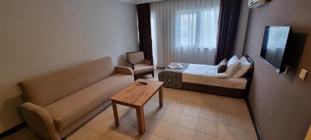 Апартаменты с диваном, электрическим чайником и мини-баром.